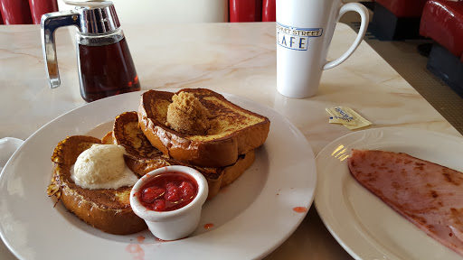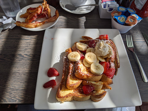 I dont think they have anything on their menu that contains any natural food groups known to man. When you see what they serve as "food" you understand why our children and population is sick and overweight. We were in the area and sat down at this cute cafe, thinking it would be a welcome break from the junk food & sugar orgy Disney unleashes on little children. Juyst a good breakfast to start the day. Didnt want to go to the Starbucks across the road to support the local cafe instead. So we sat down and ordered two cappucinos, orange juices for the kids, some eggs & toast and a fruit plate. After a felt eternity, the server arrived with two large glasses of what looked like cappuccino. As we took the first sip, our palates short circuited. We could at first not even identify what soup of chemicals we were drinking. It was disgusting. After one more sip in disbelief, I called the server to ask what this was - "this is a cappucino like you ordered, sir". she said looking at me bewildered . Obviously we were having a disconnect so I asked how they prepared it. "We have a cappucino machine, Sir". Ummm, more confusion, so I asked her to show me.only to see that the "cappucino machine" was something that made a "cappuccino" out of instant coffee ( or a chemical powder mix with coffee taste) and ... milk powder. Add hot water and voila, there is a cappuccino!. Ok, so I decided that maybe I could get the cappucino at Starbucks, a far cry from a good one, but better than pure chemicals. In the meantime, our kids had been served the orange juice. They took a sip and looked at me asking what that was. I said orange juice. The both shook their heads and said definetly not, they had never tasted anything like that, but it surely wasnt orange juice. Yup, another soup of chemical flavors. Back to the server - "sorry we ordered an orange juice" - "that is orange juice". No it wasnt. It was a chemical brew of artificial flavors that a machine mixed with water. That stuff had never seen an orange. Ok scratch all that. Just an order of eggs and toast and I spotted a "fresh granola & fruit with fresh yoghurt" on the menu. Ahh, cant mess that up right? Yes they can. Fresh fruit? Nope, came out of a can marinated in preservatives. Yoghurt? Nope, that stuff was a colored artificially sweetended wobbly gelatine. No trace of Yoghurt, just chemicals. Then the eggs came swimming in some spray can cooking oil, along with Walmart toast. The only amusing part in this was that my kids grew up eating natural food and cooking in the kitchen could not identify most of what was served. It simply had no resemblance to food. The scariest thingto see was that all around us people were eating this "food" and apparently enjoying it, which explains the positive reviews here. How is it possible that people can eat pcolored gelatine, corn starch & processed food without even noticing? Dont you know this makes you and much worse - your children sick and obese? Anyway, find a local whole foods or farmers market and sit by the fountain and eat it. Your body & mind will thank you.