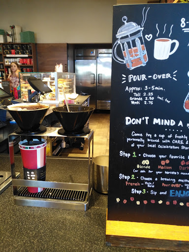 This Starbucks is definitely hit or miss. The drinks are usually made correctly, but the cashiers are not usually the happiest people around :) I would recommend taking advantage of their online ordering and just picking up your drink. The outdoor patio area is nice and is pet friendly.