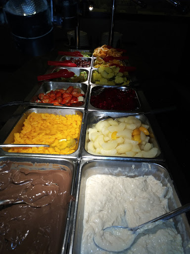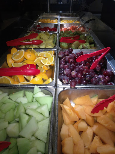 Buffet with many choices including fried chicken, French fries, roast beef, crab legs, veggies, crab ragoons, Asian dishes and much more. Lunch and dinner buffet are priced fairly. Staff is friendly and is always refilling drinks and clearing dirty dishes from tables. They seat quickly and high chairs are available for the asking. Soft music, low lighting enhances your dining experience. Tables and booths available. Dining area is divided with attractive half wall for privacy. This resturant can accommodate large parties by simply rearranging tables. Comfortably air conditioned and large handicap bathroom stalls. Room for strollers near tables. Whether you dine for lunch or dinner, you can browse the many shops afterwards. Parking is available for handicap in front, as well as ramps for wheelchair or impaired. This resturant will leave you coming back for more. Its one of my favorite.