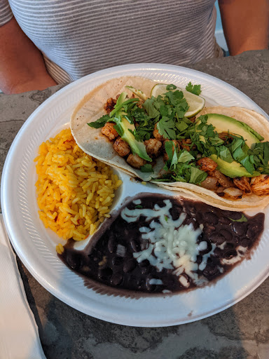 Great shrimp tacos! Also the black beans and saffron rice were super yummy! My husband had the sweet potato and black bean enchilada and he reported it was delicious as well.