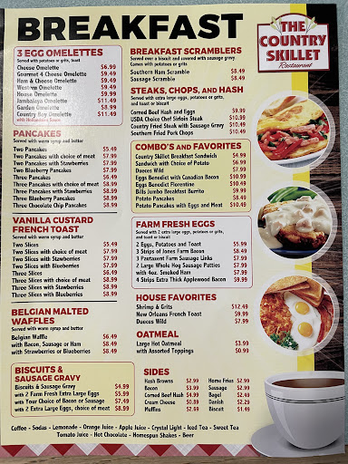 We are snowbirds for the past 18 years . We have about 95% of the time been treated with the best service and best food at the Skillet. If you are disappointed with the food you should bring it to your server s attention and I promise you they will 99% of the time make sure you are happy and satisfied customer even changing your food if necessary. We live very near the skillet and eat there several times a week. We are THANKFUL FOR THIS PLACE THAT TAKES PRIDE IN THE QUALITY OF THEIR FOOD AND SERVICE!!! Thank you Skillet Chefs.. (And yes we call them chefs because "cooks" dont take as much pride in their QUALITY of food as Chefs do.". This said we have been Blessed with Steve and Bonnie who treat us like family. Greetings to the Country Skillet: Have a Wonderful Holiday Season and an Even Better new Year! WE LOVE YOU! FROM TERRY & LINDA BOGARD- SHADY LANE VILLAGE