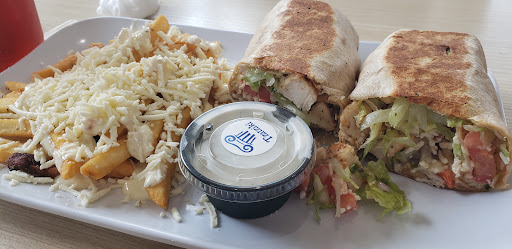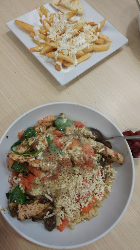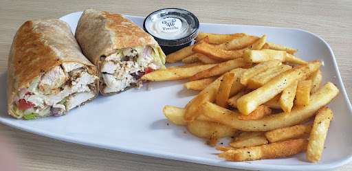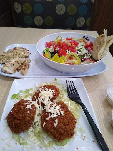 Friendly customer service Free parking Indoor / outdoor eating Located next to Tijuana Flats and across the street from the WestField Country Side mall Fast service , friendly staff Clean, modern restaurant Free wifi Vegan options Child stroller and wheel chair accessible I had the Falafel pita (no cheese) and fries. It was very good, fresh ingredients, crispy Falafel.