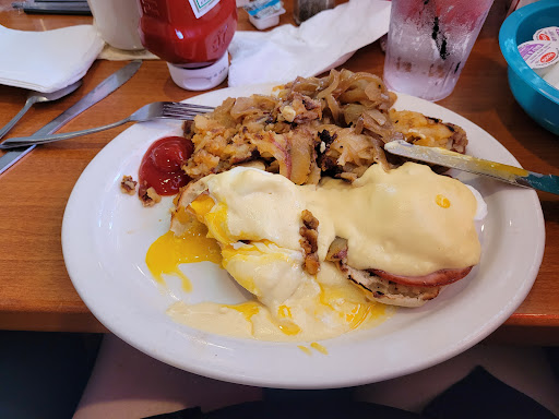 Huge menu that is very colorful in its description of the personalities that have gone into the making of this unique flavorful restaurant. Do not freak out about the parking. Someone will leave within a few minutes and a space wikk open, as the service is fast. I love the fact the menu is so varied. I got the Lorraine, which has exactly the amount of food I want. You can order French toast in many different ways. The amount of food they bring is a great value. If you dont go here to try it toy are just stupid. They even have a diner bar where you can sit at the counter. Very big city atmosphere. Enjoy