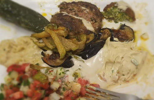 Great Food. My Plate Had On It: 6 Large Falafel Balls,awesome Falafel , On The Spot Prepared. Israeli Fresh Vegi Salad. Humus Salad. Tahini Salad, Griiled Eggplant Salad, Fried Eggplant, Fried Zucchini- All Very Fresh And Tasty.
