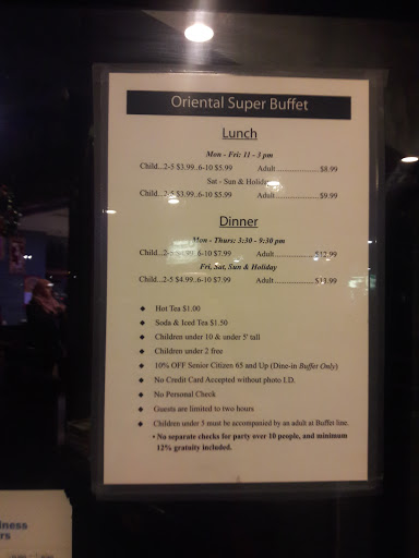 We have been eating at this restaurant for years, even before they remodeled a few years ago. We moved a little further north and have been going to Chopsticks Super Buffet by Westfield Countryside Mall. We were down in the area of Oriental Super Buffet on Gulf to Bay Blvd last week and decided to stop in as we have always enjoyed their food in the past especially their Mongolian Pork. That day they did not have Mongolian Pork, very disappointed as thats the reason we stopped at Oriental Super Buffet. I can describe the food in one word, "Horrible"!! Everything taste like it had been sitting out for hours. Chief at hibachi grill would not warm up shrimp. He did cook the steak but it was like trying to chew leather. I asked the cashier if they were under new management as I did not see the regular Asian couple that manage or own the restaurant and she said no. We will defiantly not be going back to Oriental Super Buffet on Gulf to Bay Blvd.