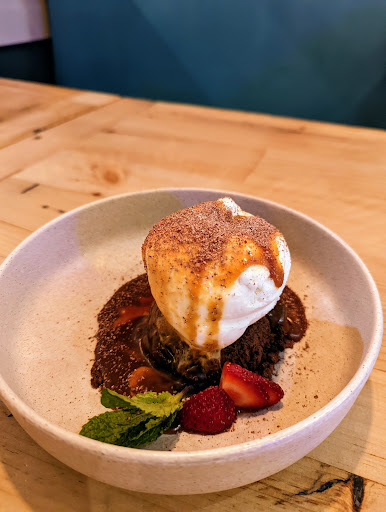 Average. Great interior and bar. Staff was friendly. Kinda lost us on the food. Fish and chips were cold. Fish was nicely seasoned, but not the right temperature. Fries tasted old and chewy. Cole slaw needs something other than caraway seeds, who likes those? My special salad was anything but, too much of the veiny white lettuce and the feature steak and artichoke skewer was pitiful. 3 artichoke heart quarters and 4 tiny steak bites. The outside looks awesome...almost got it together. Get some cornhole games, dim the lighting please, build a little stage and add some heat lamps.