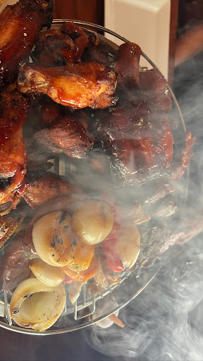 Para un Rioplatense que le gusta la carne el "Ribeye" es lo mejor que he comido aquí en USA. Muy buena carne en general. La especialidad de la casa es la carne ahumada. Un nuevo sabor que no conocía. Hasta tienen un parrillerito con diversas carnes. Que más pedir! Para el postre, el "World dad Root..." es una locura!. Precios promedio, por USD 35 te partís la boca incluyendo postre... Muy recomendable.
