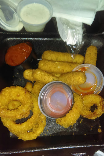 Wasnt impressed with service or food. I ordered a buffalo chicken sandwich,it was TWO tenders on a roll with some shredded lettuce,tomato slice and blue cheese dressing with a side of onion rings that I paid and extra dollar for. $12.00 for two tenders and 8 onion rings . The place was full of kids/parents from a baseball tournament and the kitchen couldnt keep up. There are better sports bars around serving better portions for less money. I was looking for a place for football season to watch the games,but I think Ill pass on this place. Its called a sports bar,yet all that was on the tvs were 4 different baseball games. No NHL draft or arena football.