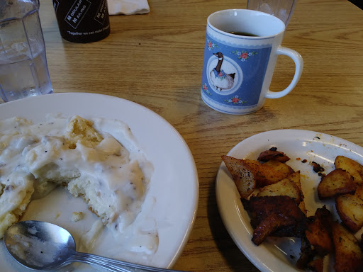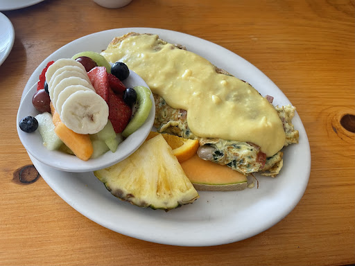 This was another of our drive-by finds. We were looking for a homey, non-chain, resto for breakfast on a Sunday morning and boy did we find a doozey! The small, family run place is filled with kitsch that takes nothing away from top notch product, prepared quickly, with taste, and delivered promptly. Every table was filled on this early Sunday morning, and the camaraderie was more like a mess hall than a bunch of strangers meeting by chance. The wait staff was patient and understanding even though quite busy and when one young waitress managed to get doused by ice cold soda (by her waiter brother) it was all taken in good humor. That couldnt have been easy. :-) With Eggs Benedict and Corned Beef Hash that were both well done and served hot we were both very happy with our find of the morning.