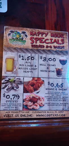 Been coming here for over 25 years. EXCELLENT food and options. Havent been in forever because Im a local and locals rarely visit CLWB... but when we do, we go to Cooters. Last Thursday I stopped in for lunch and had an awesome blackened grouper sandwich and I know my grouper. Just enough blackening seasoning, well cooked, little to much bread for my personal likings but not a complaint, fresh veggies, and good tartar sauce. What was most surprising was the $11.99 price! I pay more on mainland for the same sandwich. A bar a block away from Cooters sells theirs for $16.99. But today, today I was super impressed with the Daytona style chicken wings in tequila sauce! Wings are a staple anywhere in America and like most, Ive had my fair share. But these are the most memorable wings I can remember. Lightly covered in corn starch and breading, deep fried, then finished on the grill. The sticky coating had prefect chare marks that added even more flavor to the wings. It was sweet with a teriyaki flavor. Only two people in the whole restaurant know how to make it and is guarantee you wont find this recipe anywhere else. Hands down best wings since I spread my foodie wings! I sat at the bar both times and Cassie was my bartender. After only working there for a year, not only did this girl know her s***, she was excited to explain and recommend. Not only can you tell site likes her job, shes really good at it too! I went in today looking for something other than seafood and asked how the pulled pork was. She said excellent and home made like everything else there. So then I asked is the pork as good as the wings, she said, "BETTER!" Their hot wings looked good and came recommended from the gentlemen sitting next to me. Cassie directed me to the Daytona style with tequila sauce. SOOOOOOOOOO worth it. Parking (during the day)... a snap. Food... original and well thought up. Staff... on point. Verdict... try the entire menu!