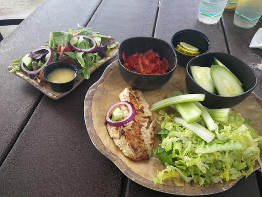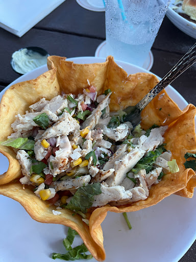Cool, calm, and relaxing! The ocean breeze, sipping a cocktail, and the view was beautiful. We had shared grilled fish tacos and coconut shrimp which were both good. The menu is a bit short on choices. Staff was great! Suggestion for Management: add an owl or 2 to keep the segulls from diving towards our food.