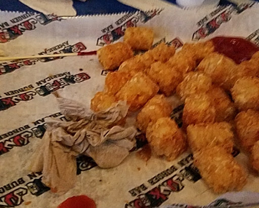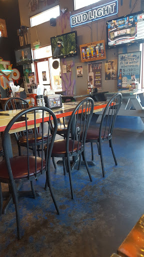 Make no mistake, this place is a bar. This is not a restaurant, so do not go expecting to get a restaurant experience or restaurant quality service. Really loud music, lots of drunkards at the bar and wandering around, mediocre service. My wife got a burrito and didnt care for it much. I got a spicy jalapeno burger, which was pretty good, but when I was eating it, I found a piece of wax paper inside of the burger. This is the paper they use to separate patties when they ship them. I am not sure if I ate any of it, but it was a good half-inch triangle of the paper that was INSIDE the burger. That just kinda ruined the whole thing for me because I spent the rest of the time there wondering if- and how much- wax paper I had eaten.
