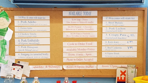 Very LOCAL FLAVOR. Buffet & made-to-order light Filipino food, limited Filipino grocery, even an American/Filipino karaoke. Fun! Good ice cream.
