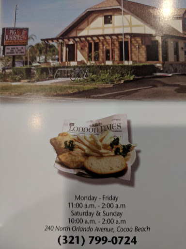 The Pig and Whistle is located in South Cocoa Beach. Their food is very good. They have daily specials-try the Sheperds Pie. Offered with meat or vegetarian. Also if you are in need of some "comfort food" try the mac and cheese-yummy! They have a great beer selection as well. The staff is very friendly and they make you feel right at home. When you walk in it is as if you have entered a British Pub. They even have mushy peas!