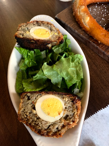 I got the sirloin sandwich and it was horribly bland. Steak was tender though. My husband got the brisket hamburger and it was rather unimpressive as well. French fries were decent. Blackthorn Cidar beer tasted like Apple Vinegar. The only amazing thing all night was the Bavarian Pretzel. Not a good place for dinner but probably perfect for snack or late night food after drinking.