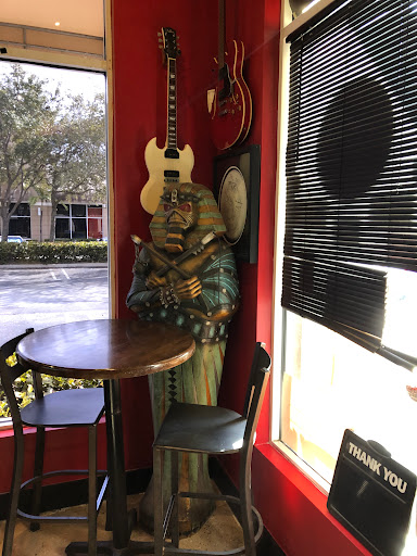 Went here to meet with my father "half way". Neither of us had been there before. Ive been to the limited supply of BBQ joints here in S. FL. So, we get in and the place was not too busy on a Friday at 700. Seated right away. Ratio of cooks and servers to patrons was about 3:1. Owner is losing money but hey, hes rich; place is probably his "tax-shelter" wink wink. The decor was very nice and suiting for both a rock-n-roll place and BBQ place. I was expecting amazingly loud rock music inside and was very glad that was not the case. Volume perfect. There was a stage set up so I am not sure if it gets nuts or if that was just for show. So we ordered our food and Im pretty sure Men-in Black hit me with their memory eraser because I am pretty sure we waited only 15 seconds for out food to be served. I thought it would have taken longer for the server to walk in to the kitchen than it took to get our food. The take-away from the speedy service is that the ribs (we both got 1/2 rack baby backs) were warm, not hot. Not a major blow but I would have enjoyed hot ribs. Also it got me thinking...these werent cooked to order. They were cooked all day (which they should be) but not thrown on the grill at all, or not long enough when the order went in. The sauce on the ribs was phenomenal. Been since the 80s living in FL that Ive had good-ass sauce. Bummer but Im glad there is a place with good sauce finally. There were a few other styles of sauces on the table like the spicy, the regular, the this and the that. All very good. I had potato salad just to try it. Meh. Not a fan. Also had the beans. They were good. Nothing to die for. Overall, the place is awesome. We both said we will be back with 100% certainty.