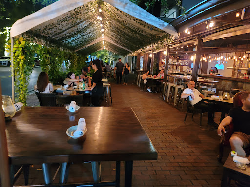 Went there yesterday for the first time with my husband and a friend. Sat on the patio for about 15 minutes and there were 2 bartenders on the bar right in front of us cleaning glasses (because there was no one in the bar) who didnt even aknowledged us. We finally asked the bartenders why no one have greeted us and they said they didnt know who was our server like that was not their problem. Finally, they got someone who looked extremely bothered to talk to us. We ordered the drinks and she just left and didnt even ask if we were ready to order appetizers (which we were after staring at the one menu that was already sitting on the table for almost half an hour). We all felt extremely ignored and left, because if you think for some reason you are better or above the people you are serving than i dont want to give you my money or enjoy my time at this establishment. Do not recommend this place at all.