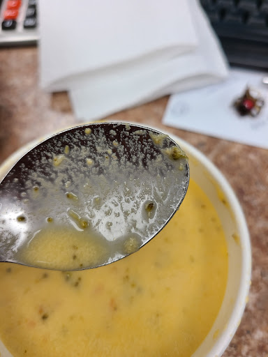 There was a chunk of hair fried into my sandwich. The way the employees talked about the soup made it sound gross. The dirtiest hobos in town all hang out there. Everyone in there looks sad. EDIT: Now Im feeling sharp pains in my stomach that Ive never felt before.