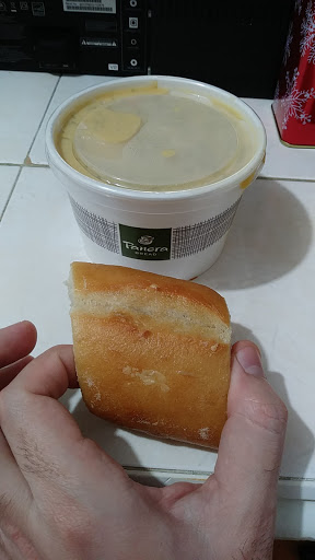 While I was in Miami, I had gone to Paneras and gotten the Mac n cheese and of course the bread and drink. The Mac n cheese was pretty good but the bread is highly overrated - it was chewy. The second time I came to this location, they served me lukewarm, nearly cold Mac n cheese but quickly corrected it with a free cookie for the inconvenience. Overall, it was just okay.