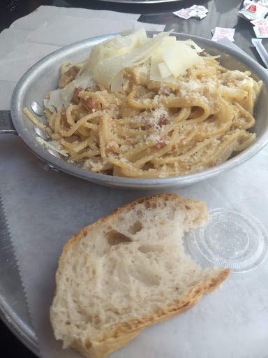 Order and pay at the counter, they bring your food to you. Most of the staff is Italian, and speak Italian, and the food is awesome. The pizza crust is flavorful, the gnocchi is firm. The menu has unique twists like a chicken pesto calzone, or have it as a sandwich. Prices are reasonable for the area, and you can be eating your fresh meal very quickly.