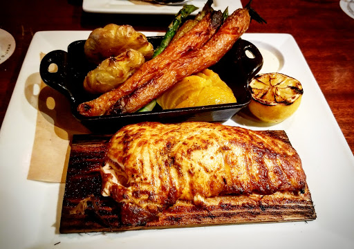 All of our food came out cold! When we asked for new ones, they brought back microwaved reheats. This is ridiculous. We werent planning on going to a restaurant to eat microwaved meals. The manager was very rude and told us that remaking everything would take all night. If you are looking for a nice family dinner, dont come here. In addition to the cold food, the "extra moist " salmon came drier than Utah. The mashed potatoes taste like soap. The music is really nice, though they play it so loud that one needs to scream at the person one is trying to talk to. After being given our remade food, the servers and managers gave us the aura that they spit in our food. It was not a lovely experience. This was my brothers worst birthday so far. Never come here!