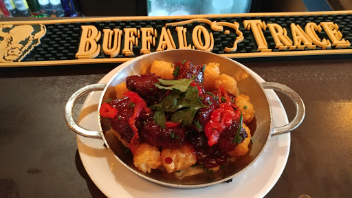 Good service, kind of. Fried chicken was good. Happy hour pork cracklins were excellent. $5 well old fashions at happy hour. Kept us at the bar because all of the empty tables behind us were supposedly reserved by various parties. The tables were still empty long after our meal. Bartender suggested substituting mac and cheese for the side with the fried chicken, then added $9 to my check for an extra order of mac and cheese. Ive had better fried chicken with a side for much less than the $35 that I ultimately paid here. Another member of our party had the burger and thought it was excellent. Everything on the happy hour menu is good too. Good place for happy hour and dishes under $20. Dont be tricked into buying anything for more than that here unless you simply have too much money and need to get rid of a large amount of it in a short amount of time.