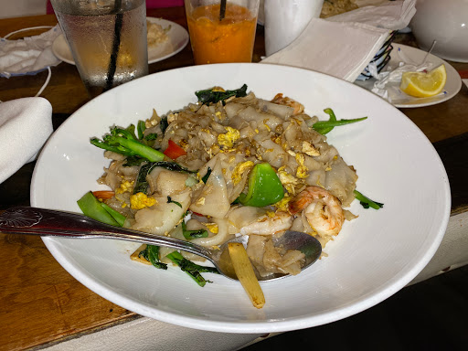 I ate at this restaurant a couple of times maybe a year or two ago, and liked it a lot. Maybe they have a new recipe or new cooks, but today I finally went to get my favorite chicken pad thai to go, and it was a total disappointment. The menu says chicken and shrimp pad thai, but there was not a single shrimp in there, barely any chicken - maybe 7 very tiny pieces, not nearly enough for an adult entrée, and way too heavy on the sauce. In all fairness, I did say chicken pad thai when I ordered, but they must have been conserving their chicken too. If anything, they should have added more chicken and not less !! If I had been dining in the restaurant, I would have returned this dish to the kitchen, but driving back just was not worth it. This restaurant is in a great location next to a movie theater so they probably do great business, but I wont go out of my way to eat there again.