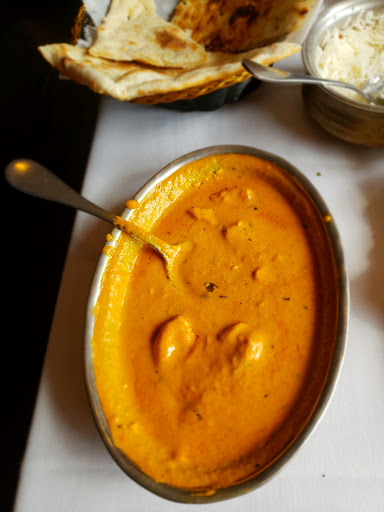 Delicious naan, good food, but service was reeeeeeeeaaaaalllllly slow. The place wasnt busy when we came in, but our food took a long time... also, a table that came in fifteen minutes after us got their food ten minutes before us. Im a fan of Indian food, but this was my familys first time with this cuisine, and they overcooked my dads fish and made us wait a long time. The server seemed hostile toward inquisitive first timers who never had Indian food and wanted to know about the differnt dishes. Also, this place is way overpriced for the portion size. Seven shrimp for 16 bucks? A few quarters of naan for 9? Come on, seriously? If you want to try this place, definitely get the groupon first.