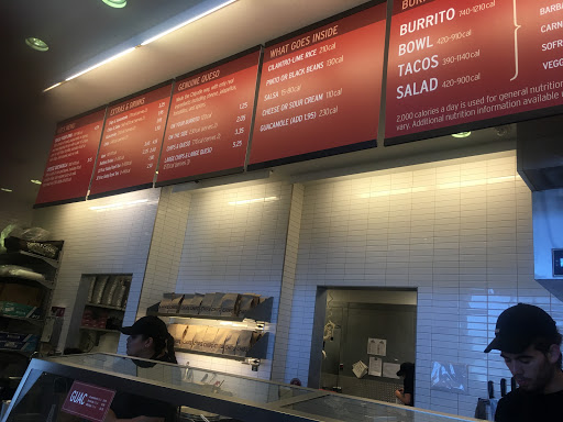 This location has typical Chipotle fare, it does get very busy around lunch time though. the line to order can be quite long (10+ minute wait). The indoor seating gets taken up quick but there is great outdoor seating which not a lot of people use. It is also located right next door to Starbucks.