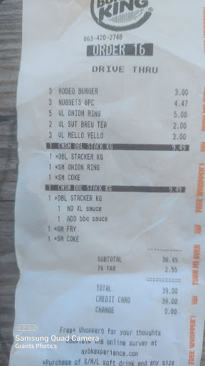 This place needs Profesional help. Lets start off by the drive through. I can hear a whole bunch of chatter and foul language in the back ground.Now my order was completely wrong. I had ordered a bacon and cheese whopper meal and all they gave me was just a whopper. Didnt find out until I got to work. And I had also ordered two tender crips chicken sandwiches and they asked me crispy or grilled and they both came back as grilled. Now all of these where larger size meals and all they got right was the drinks. The gave us medium fries. And my friends and I are pissed about this place. I dont recommend anyone to go to this Burger King at all. Just go to McDonalds. At least theyll do the job right the first time.