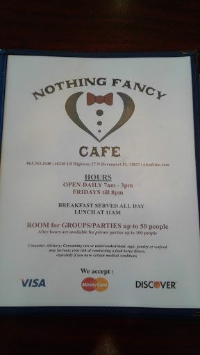 This restaurant goes above and beyond with "Nothing Fancy". Its embarrassing to live half mile away from this place. TOURISTS, please avoid this.