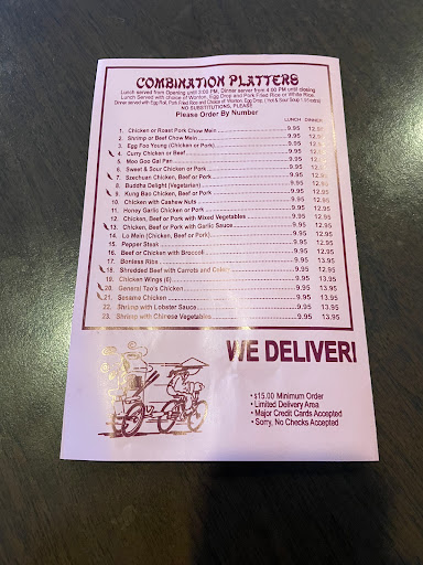 Nice people ! Terrible food. Broccoli chicken was just not good! Tossed broccoli with chicken no sauce, no flavor , nothing . Sucks to pickup food after a long days work and taste and looks like crap. Ingredients were fresh , for Chinese restaurant standards l, but absolutely no love in their food! Carpet is dirty, sign is decrepit. Eat at your own risk! My cat was happy !