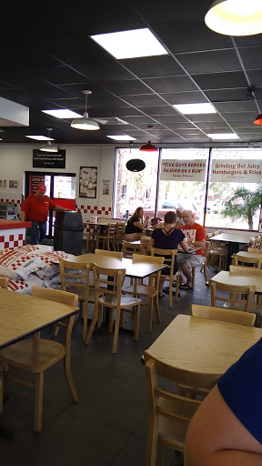 As no stranger to Five Guys, this location has good food and service but the ambiance felt crammed and disorganized compared to other locations. It was busy and food took about 15 minutes from order to actually receiving the bag. The food was good though. It was hot, greasy, and delicious. Fries were a little skimpy and there is not a Coke Freestyle dispenser compared to The Pavilion location in Port Orange. Overall, I would not visit this location again since the Port Orange location is about the same distance from me but a much better overall dining experience.