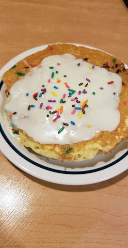 Horrible...where to begin?!! Waitress didnt give us straws, crayons, creamer for coffee very late, didnt get order correct, and told me I was wrong, when confronting her. The whip cream on top of the pancakes melted and was on the side of the plate. This location is very busy and even if your given a buzzer, they will skip over people before you....if your waiting outside. They will ask if there is a party of 2, but will not go outside and ask! Why not go by what they write down and use the buzzer?? I dont recommend this location.