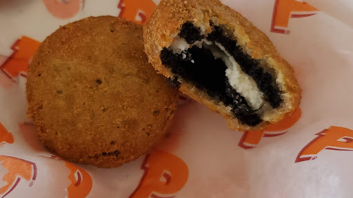 Food was hard and overcooked. Our order was not correct and it took forever for our order to get to us. The place was nasty.....the employees were kicking dropped food under the counters instead of picking it up. The drink station was also in bad condition. Skip this place for someplace better. And i normally love Popeyes but certainly not this location