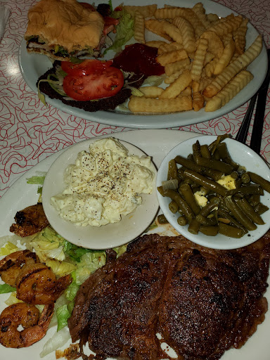 My girlfriend and I went to this location for dinner and was seated promptly. Server arrived somewhat on good time and took our drink and appetizer order. We had the mozzerella sticks and they were nothing too special but the presentation was kinda thrown on and the marinara sauce was spilled on the sheet that lined the basket. I had the "House Steak" and my Girlfriend had the BBQ Burger or whatever it was called. Now the restaurant was not even remotely busy and our server was occupied on doing her silverware rolling and basically neglected us on what seemed like a 25 minute wait for food. Our food arrived and already my Girlfriend sees that shes missing the bbq sauce that is supposed to come with her dinner, so she wanted to wait until the server came to fix this. The steak given to me was one of the most unseasoned, odd-tasting steaks Ive ever eaten. I have reason to believe the damn thing was probably thrown in the microwave! So after about another 10 minutes of our server avoiding eye contact and rolling silverware, I managed to flag her down with an "Excuse me!" and she did this weird 180 from across the restaurant and made it seem like we were an inconvenience. She came over and my girlfriend addressed what she needed and I didnt even bother wanting any reparations for this tragic meal as I was already infuriated. After my girlfriend was already halfway through her burger, we decided that we just wanted to leave and flagged down the server once more to get our check. I would recommend for nobody to come eat at this place whatsoever and take their hard earned money elsewhere, especially if youre vacationing!