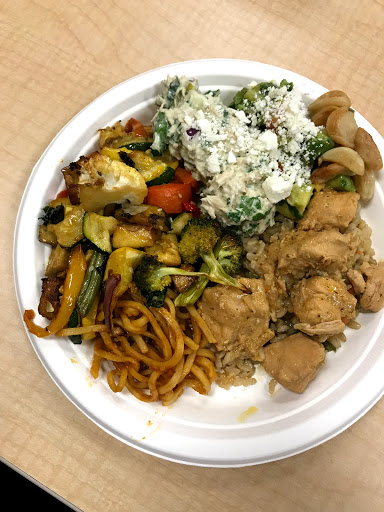 I try to eat vegetarian one day a week and the lunch buffet here is perfect for that! The food is wonderful. The only thing that sucks is that I usually eat alone and the building has no cell reception. They have wifi but the signal is too weak so I have to people watch while I eat. Kind of fun sometimes.