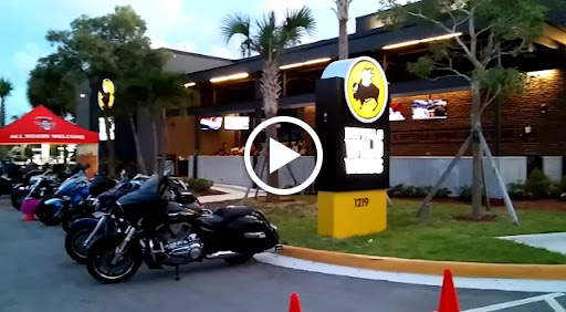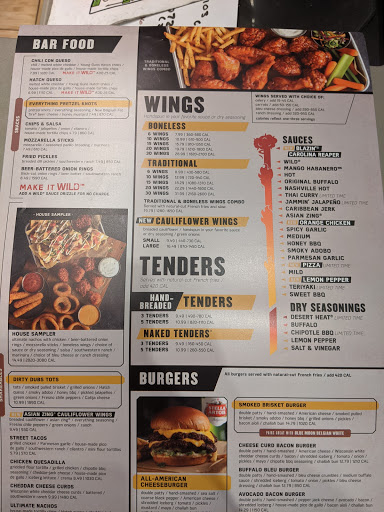 It was great for a quick lunch while in the road. We took two dogs, and they seated us outside and brought them water. Nice to find a dig-friendly option. Food is standard sports bar fare, with a specialty in wings. Lots of sauces to choose from. Ive been to many Buffalo Wild Wings, and the food has always been decent.
