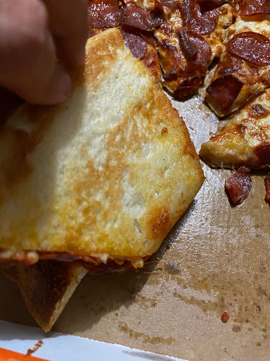 The pizza was slightly overcooked and literally tasted like playdough. They also were not as generous with the pizza sauce as they were with the Parmesan cheese that is clumsily sprinkled on top of the breadsticks (which were hard, by the way). Little Caesars desperately needs a recipe change.