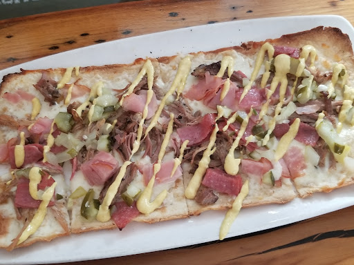 At first we thought it was a little pricey for a bite and beer. It turns out this gastro pub is outstanding, prices are not as high as they appear for the quality of food and service. Our waitress, Briana, was attentive but not over excited or annoying like other places. We had the chicken buffalo dip and the mussels and both were delicious, the dip was Server with crispy wonton chips and the mussels seré oír of this world fresh with home made marinara and fresh basil. The ribeye esa delicious, the gorgonzola have it that tang and served medium rare, as ordered. The house burger was delicious, slow smoked brisket in it tasted heavenly and the sides were fresh and crisp. The salted caramel cheesecake was good and the beer was cold. Had one of the specialty drinks , the Madrid, it was as described, not weak or overpowering. Have to recommend this place 100% since the quality and freshness of the food stood out to two e,perienced foodies.