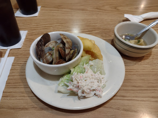 Food wasnt that great alot of the food was sitting in its own juices and cold when they gave us our bill the waitress literally stood over us where I couldnt get out of the booth saying you pay now you pay now practically snatched the money out of my hand and ran to the register with it when I asked for my change she had me told me I had to wait for another woman to give it to me