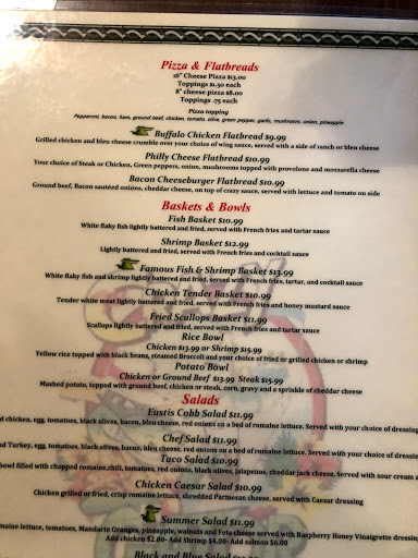 This place is an absolute DUMP!!!! Overpriced crap served on a plate. Everyone is better off going to a soup kitchen and eating better quality food that what this place serves. Homeless starving people would not eat this food. The restaurant is run down, dirty, discussing, the food was like nothing I have ever seen and the service was as if no one wanted to work there. There were flies everywhere and landing on the drinking cups and bowls that they were serving people in. I ordered the gator tail, Backed stuffed fish – w/ there would famous fish with crabmeat stuffing, and backed stuffed shrimp – with crabmeat stuffing. Our sides were the same, spicy shrimp gumbo and Caesar salad. $46.00 for two people – over prices $$$$ I am born and raised in Florida and know good gator tail and seafood. The gator tail was just over cooked batter with no special sauce and a very small portion. Both entrees were drowning in a pool of butter/oil that had to be drained from the plates (1/2 c on each plate) the fish tasted like it was thawed in a 5 gallon bucket with water and had a weird detergent taste to it. The “world famous fish with crabmeat” needs to remove forever from their menu, b/c there was NO hint, taste, or piece of crabmeat to be found anywhere. I have been to restaurants’ that have “skimped” on the crabmeat, but this place doesn’t even include it. It was plain old unseasoned disgustingly soggy stuffing. Was the stuffed shrimp and better – NO!!!! I was $14.00 for 6 pieces of butterfly, rubbery shrimp (medium to small size) topped with 3 ice cream scoops of that discussing stuffing with NO CRABMEAT to be found. The spicy “shrimp” gumbo was missing the “shrimp and didn’t even taste like there was any seafood. The soup reminded me of leftovers from Monday’s night special and it was Wednesday. DO NOT EAT HERE!!!!! Save your money and go somewhere else!!!!