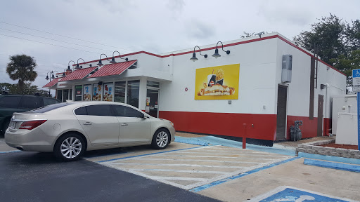 Hard place to get to with all the road work. Old man in front took forever. No CO2 so no soda, no sugar so no sweet tea. Had to make our own sweet tea with sugar packets and it still didnt taste good. But after ordering, our food was brought to us really quick. The burgers were good, the fries were great and the corn pup was awesome. When we were done the power went out. They had it rough but we still got good food, fast and cheap!