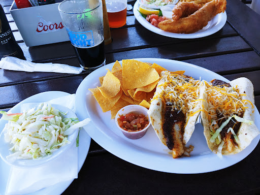 Food was good, service was excellent. We had lunch and drinks. I wouldnt say the food was great but good for what we were looking for. The lunch menu doesnt have a lot of seafood options on it as compared to the dinner menu which does have more seafood. The lunch menu was your basic sandwich options, salads, etc. I had the gyro which was good my girlfriend had the fish and chips which had a very large portion of fish. Id recommend asking for the horseradish sauce which was very tasty. Oh the deck upstairs doesnt serve food so if your looking to sit outside its a downstairs only deal.