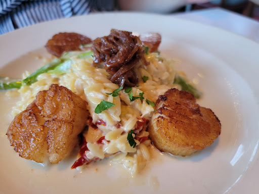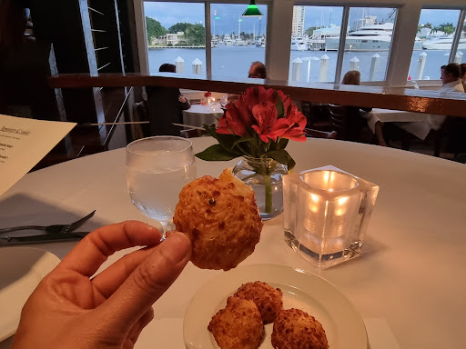 The food is phenominal. We started with a rock shrimp appetizer and pei muscles. The rock shrimp was hands down the best Ive ever had. It was one of the best seafood dishes Ive ever had. Muscles were as expected. I had the grouper with quinoa and the divers scallops. The scallops were huge. They were the diameter of an orange. We took too long with our appetizers so I think they sat for a little and the crust on the scallops broke down and wasnt as crisp as they looked. Still they were great. The grouper was terrific. There were so many flavors that came together to make an amazing entree. The atmosphere was lacking in my oppninion (but still good overall). It was advertised as amazing views. Over the years the marina has been built up, ruining the views. Instead of looking at a beatiful coastline in the intercoastal, you look at a bridge, condos, houses, or huge boats. They have large windows which could be open on cooler days. It was very hot when I went so thankfully they were closed so we could soak up some much needed AC.