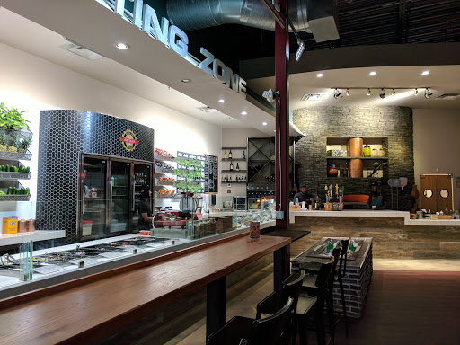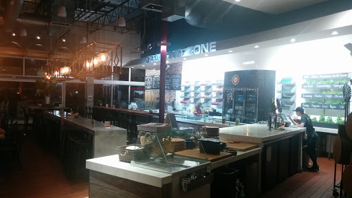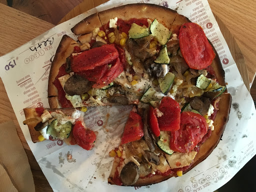 What a fun new place for pizza! All of the pizzas are "personal" size, but seem to be about 12 inches. It was an easy two lunch size. The decor is nice. Clean and modern with pots of fresh herbs and big bins of fresh veggies which ultimately end up on the pizzas. Some nice jazz plays in the background. You start with choosing your sauce - traditional, Alfredo, pesto, etc. then, its on to the cheese station. There youll find the traditional mozzarella, parm, Romano and feta, but also ricotta, Gorgonzola and others. Next, its veggies, which range from roasted squash to roasted corn, cucumber, artichokes and more than a dozen more. Meats are next. Meatballs, pork, chicken, sausages or whatever sounds good. Everything was fresh and generously applied. Less than 5 min. later, your perfectly fired, crunchy, thin crust pie is brought to your table. You can enjoy it with an assortment of design your own soft drinks, beer or wine. My only issues were that the ricotta needed some salt and my chicken was just a bit on the dry side. They were also out of some of the toppings, which kept it from being 5 stars. However, unless you opt for premium ingredients, like steak, you can pile up your pizza for $8. Not bad at all. Im definitely a fan!