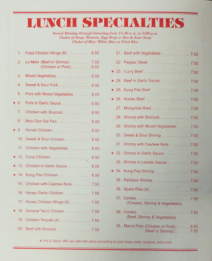 portions are too small for the price. food is average at best. the cook cleans each pan after cooking a dish with steel wool that sits in dirty water.and the dinner specials dont come with eggroll which is the usual in Chinese food places. not worth the money in my opinion