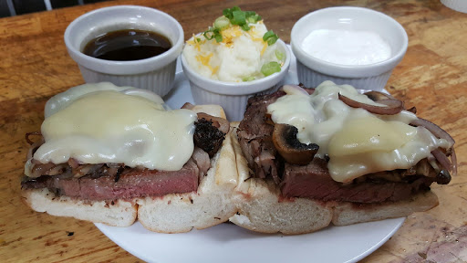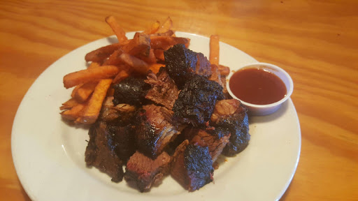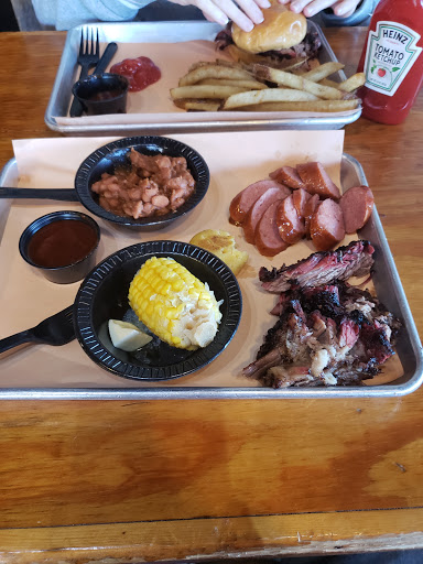 Fantastic place! I went on a Saturday at 715pm during snowbird season and was shocked that the place was a ghost town. I was nervous to eat there. Im glad I did. The decor is awesome. It has a great BBQ feel. You have to order at the counter and get your own drinks. They bring the food out to you and clean up for you. All meals come with a cornbread "thingie". Its a cross between a piece of cooked cornbread and an uncooked cornbread. Im assuming that its supposed to be that way. I didnt get sick so I guess it is. I got a sampler which had brisket, two ribs, a sausage, and three slices of turkey. The brisket was the best. It wasnt dry, had a great taste, and fell apart easily. The turkey was equally well. The sausage was really good. It was moist and didnt have big hard chunks of fat. The ribs fell of the bone and were just ok. They had the same taste of Chinese ribs though. They include a cup of a watery sauce which was sweet and a little tangy. It was like a BBQ au jus. The table had a bottle of real sauce which was very good. The place is decorated nicely, the staff was friendly, and the food was great. Dont pass it up