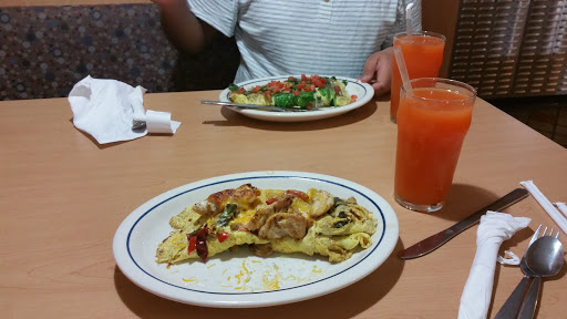 This place is always packed around breakfast time, and with that youre going to have to have to wait a little bit longer for your food. But this last time was ridiculous, my family had the worst server ever she didnt even deserve the $5 tip my husband gave her. We waited 20 minutes before she took our food and drink order. After 30 minutes we called the manager about our drinks, only to find out our drink order was never place because he sent someone else to retake it. My children finally their food after a hour. Which judging from the whipped cream on their pancakes, looked like it had been sitting there for a while. And still no drinks (seriously what is so hard about putting orange juice in a cup and bring coffee)! Another 20 minutes go by and she brings my children their juices with my meal as well as my husbands. And both of our orders were screwed up and kinda cold, we also had to remind her AGAIN about our coffees. My husband and I were almost done with our breakfast when she finally brings coffee and (not to our surprise) she managed to screw that up too. She brought us some pumpkin spice coffee instead of what we ordered. Smh never again!