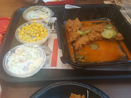 Food same as any other kfc, staff do there job, but my biggest complain, I was eat inside the restaurant 3 homeless guys came to me asking for money, while I was eating. They smell horrible, my stomach turn inside out and one of the homeless guys sit a few tables from where I was, I just go up and left. Never again I will stop at this place.